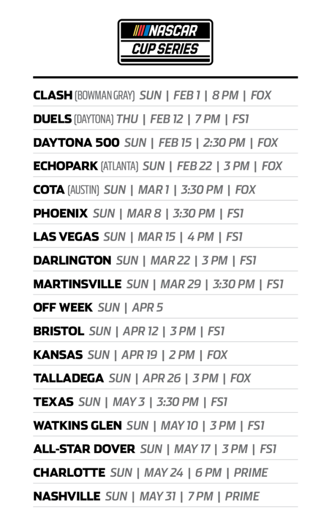 Below is the Calendar for NASCAR 2026